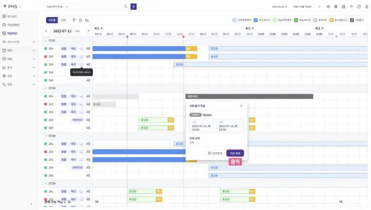 마우스 클릭 몇번으로 빠른 예약 생성이 가능하며 시간별 예약 조회를 통해 효율적인 대실 관리가 가능합니다.