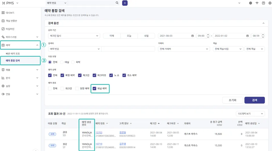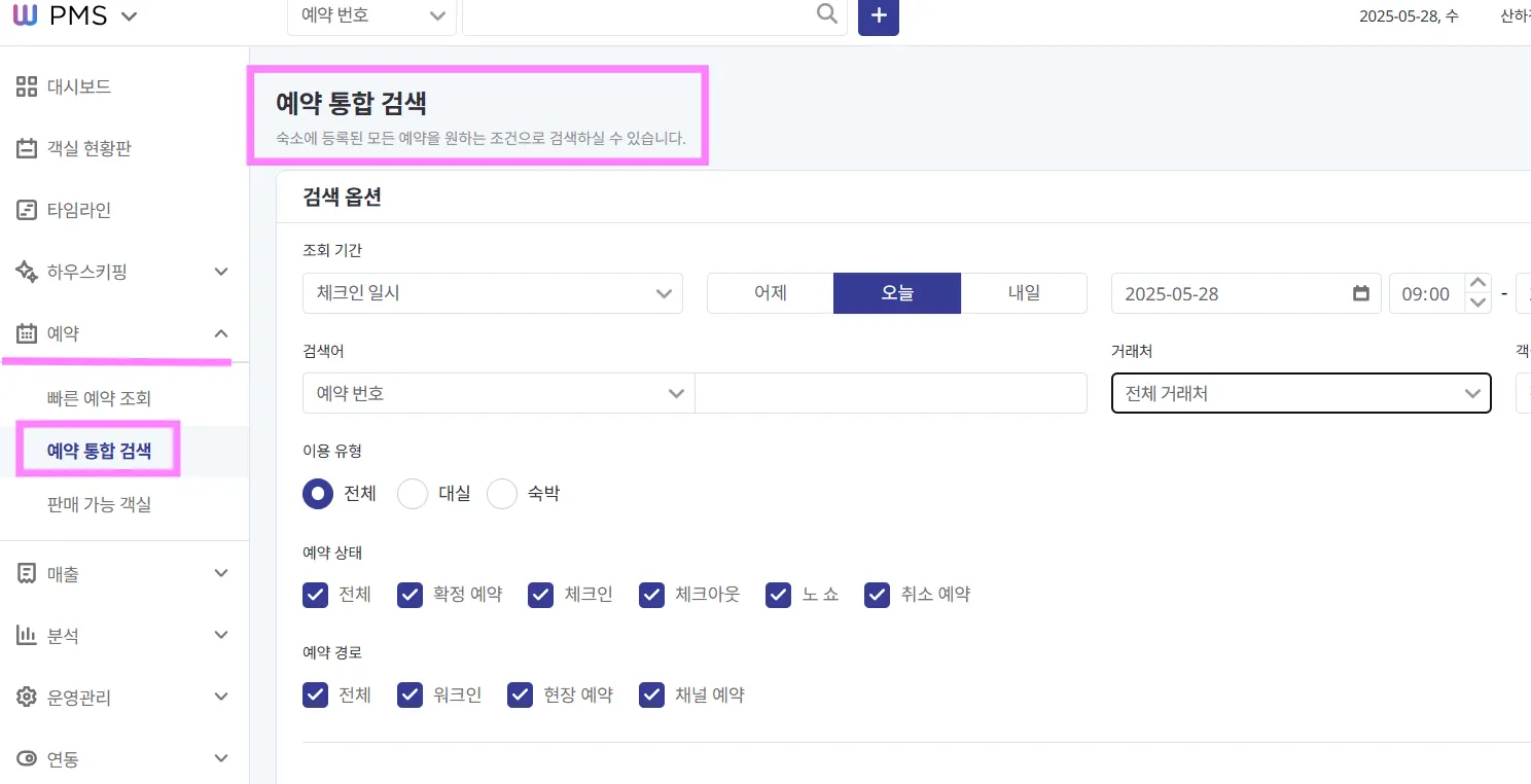 다양한 채널(전화, 홈페이지, OTA 등)의 예약을 PMS에 등록해