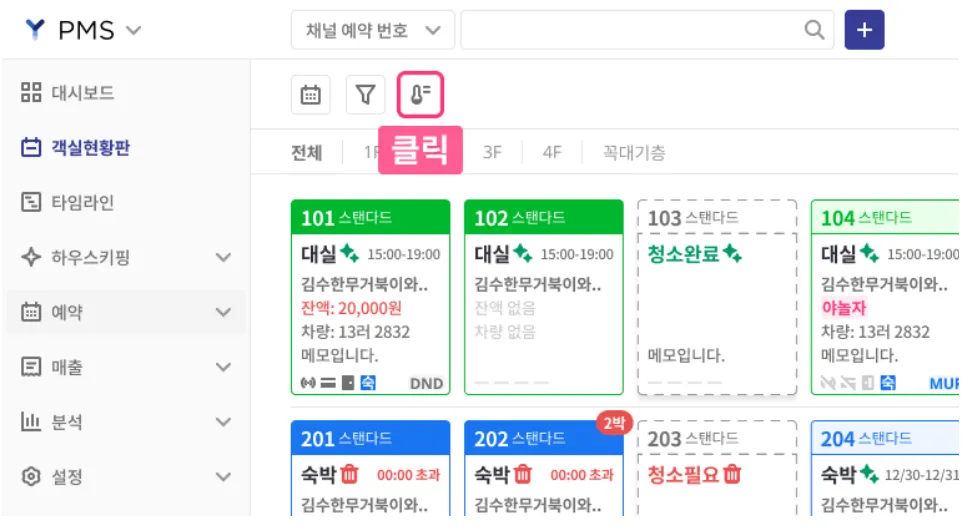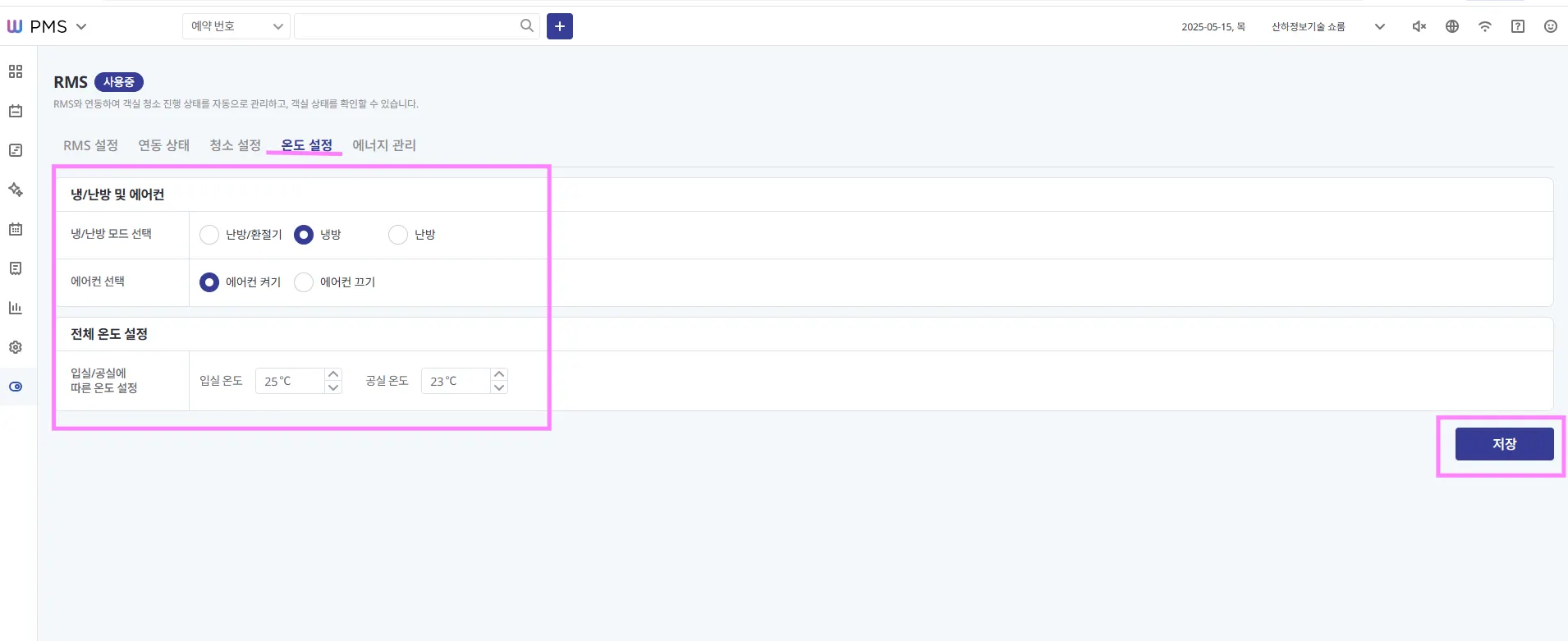 씨리얼, 가람 RMS를 PMS와 연동한 업장은 PMS를 통해 객실의 온도 조절 작동이 가능합니다.