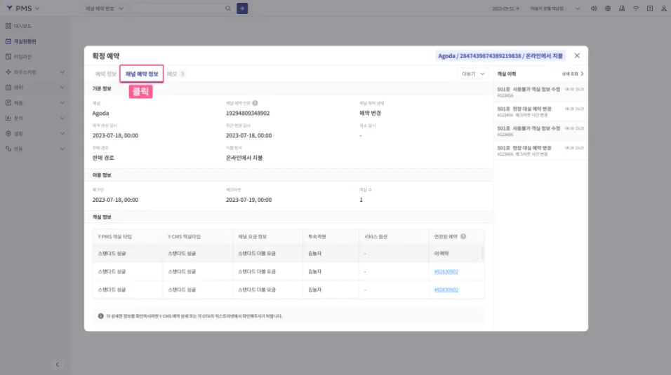 예약 변경: OTA에서 예약 내용이 변경되면, PMS에서도 '확정 예약' 상태에서 자동 반영