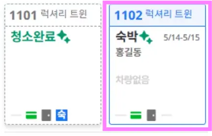 앱/인터넷으로 예약한 고객이 온 경우, 객실을 미리 배정하면 배정한 객실 현황판에 표시가 됩니다.
