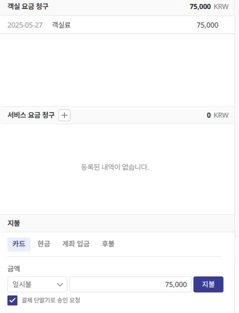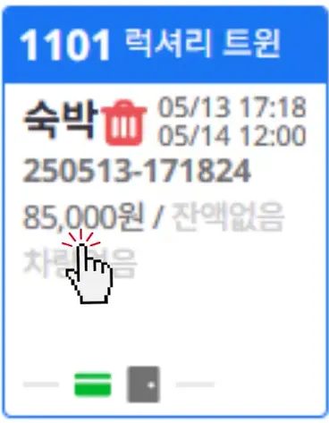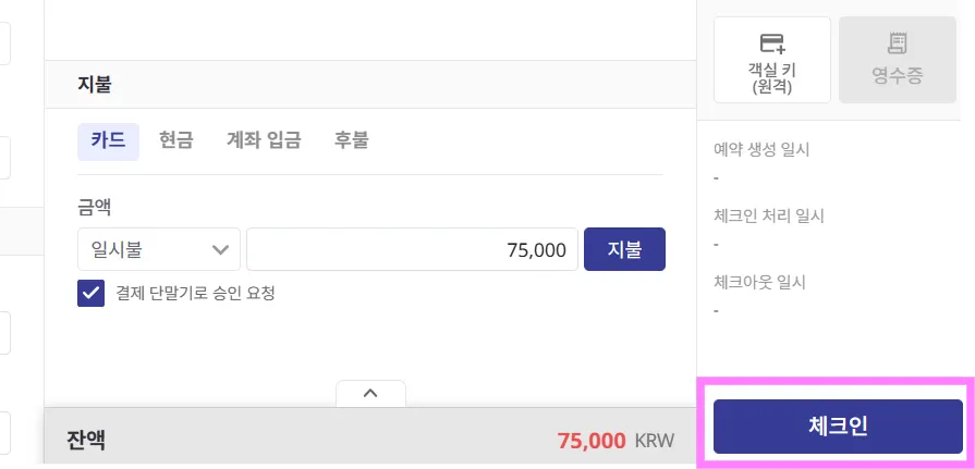 *먼저 체크인 후 나중에 결제한다고 할 경우 : 지불 클릭 없이 체크인