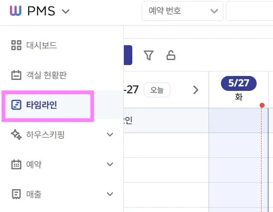 타임라인은 시간별, 일별 실시간 잔여 객실 확인이 용이합니다.