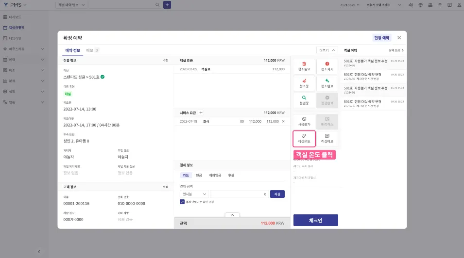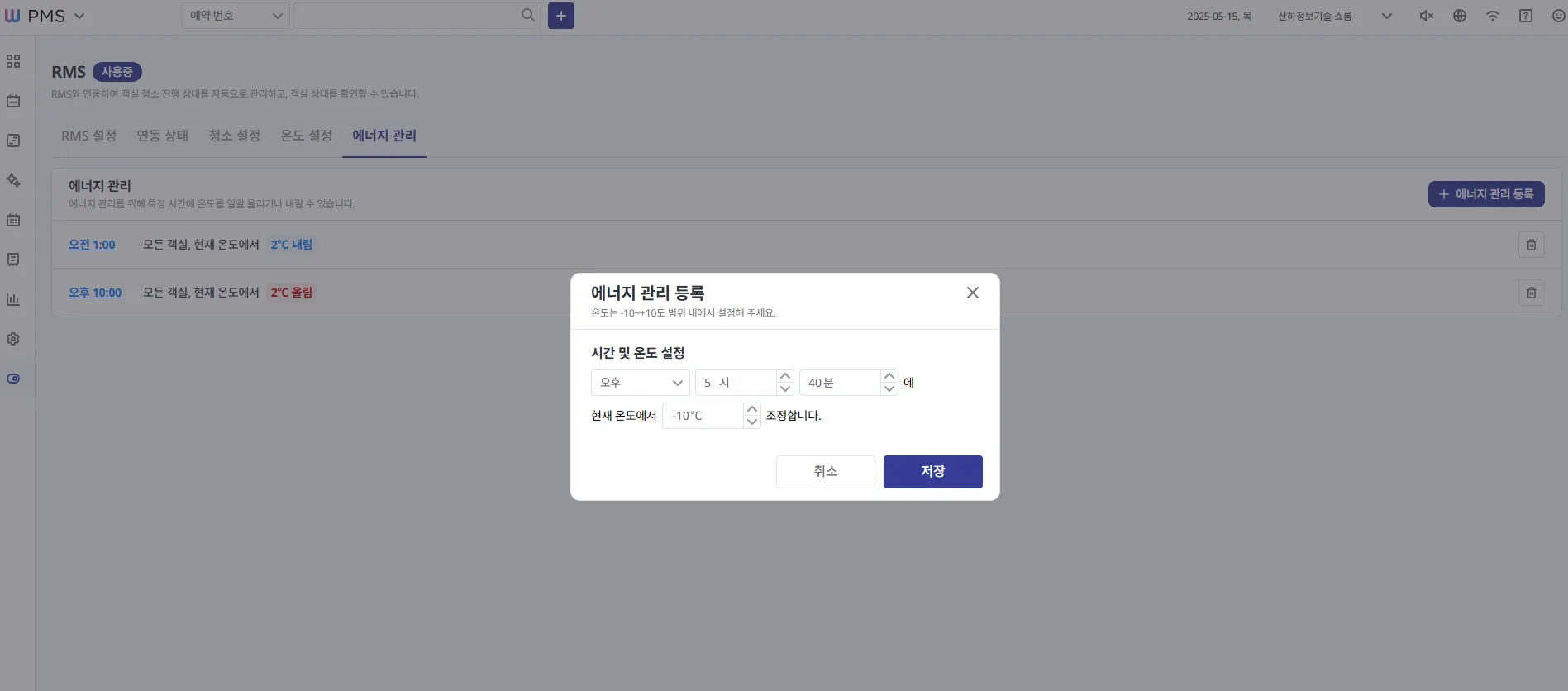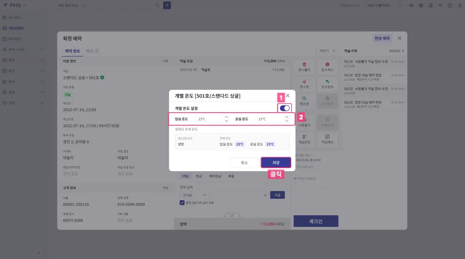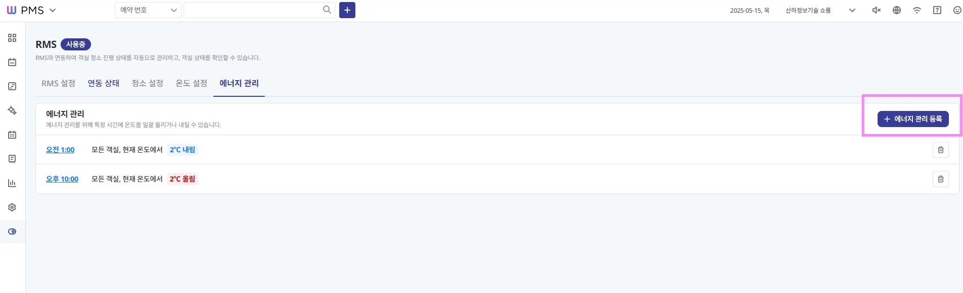 씨리얼, 가람 RMS를 PMS와 연동한 업장은 PMS를 통해 객실의 온도 조절 작동이 가능합니다.