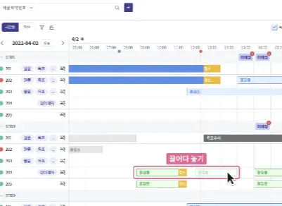 예약 블럭을 가로로 드래그: 날짜/시간 변경