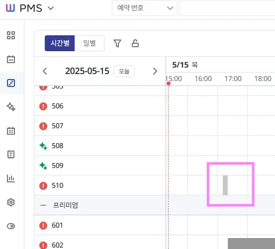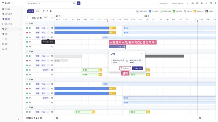 아래와 같이 타임라인 화면에서 해당 객실을 클릭하여 등록합니다.