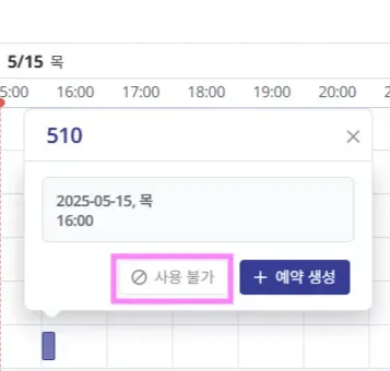 타임라인은 예약 생성, 조회, 재고 관리가 모두 가능한 통합 관리 메뉴