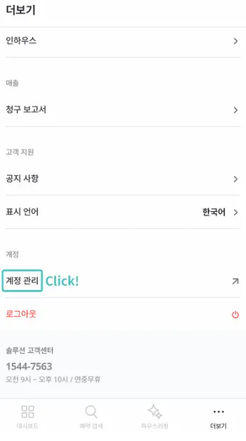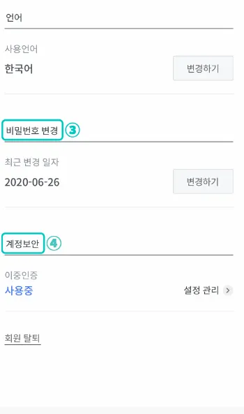 계정 관리 : 계정 비밀번호, 언어 설정 등의 사용자 정보를 변경할 수 있습니다.