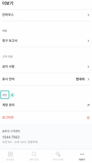 예약과 매출 조회, 그리고 전체 공지 사항 목록을 조회하고 계정 정보를 관리할 수 있습니다.