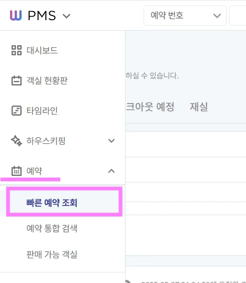 체크아웃 예정 : 현재 투숙 중이면서 '당일 영업 마감 시각'까지의 체크아웃 예정 고객을 확인할 수 있습니다.