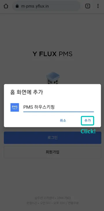 PMS 모바일은 인터넷 환경만 제공되면 언제 어디서든 접속하여 예약과 매출, 하우스 키핑까지 관리할 수 있습니다. 빠른 접속을 위해 바로 가기 아이콘을 추가해 주세요.